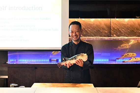 カウンター越しに職人がふぐを捌く姿を間近で体験できる、